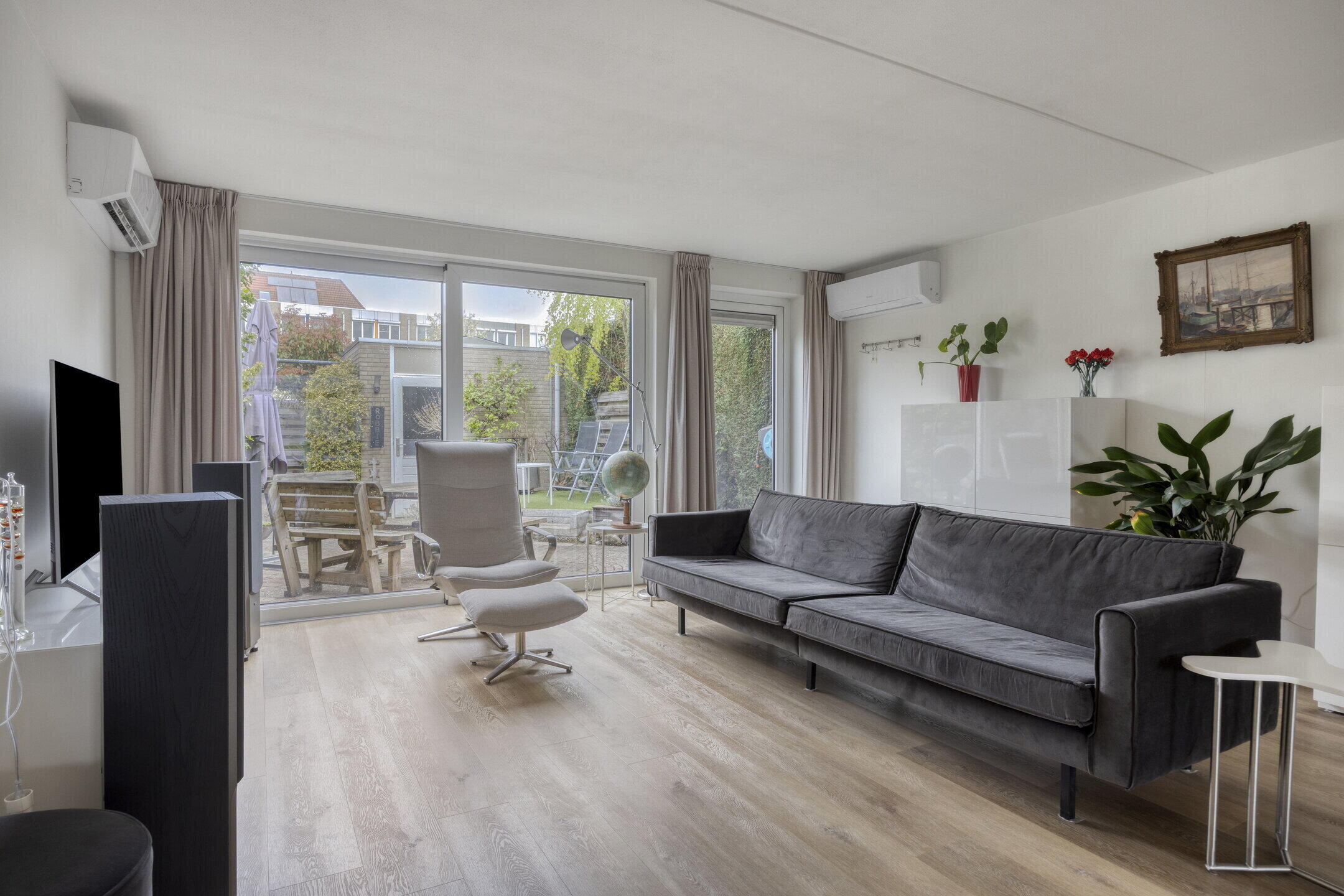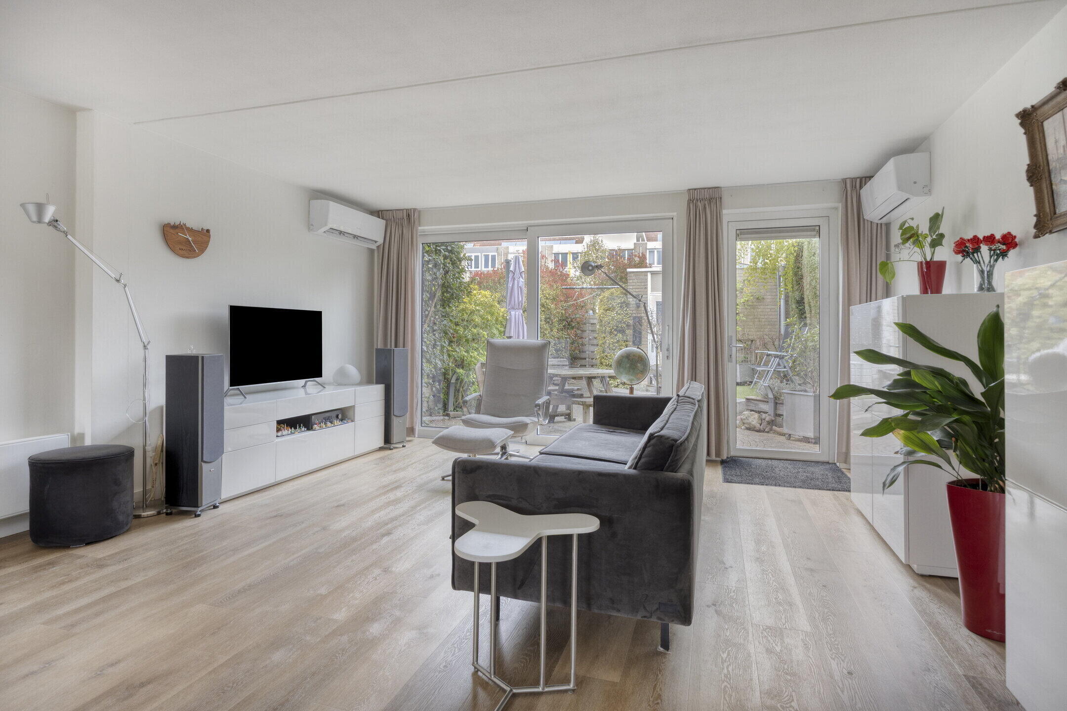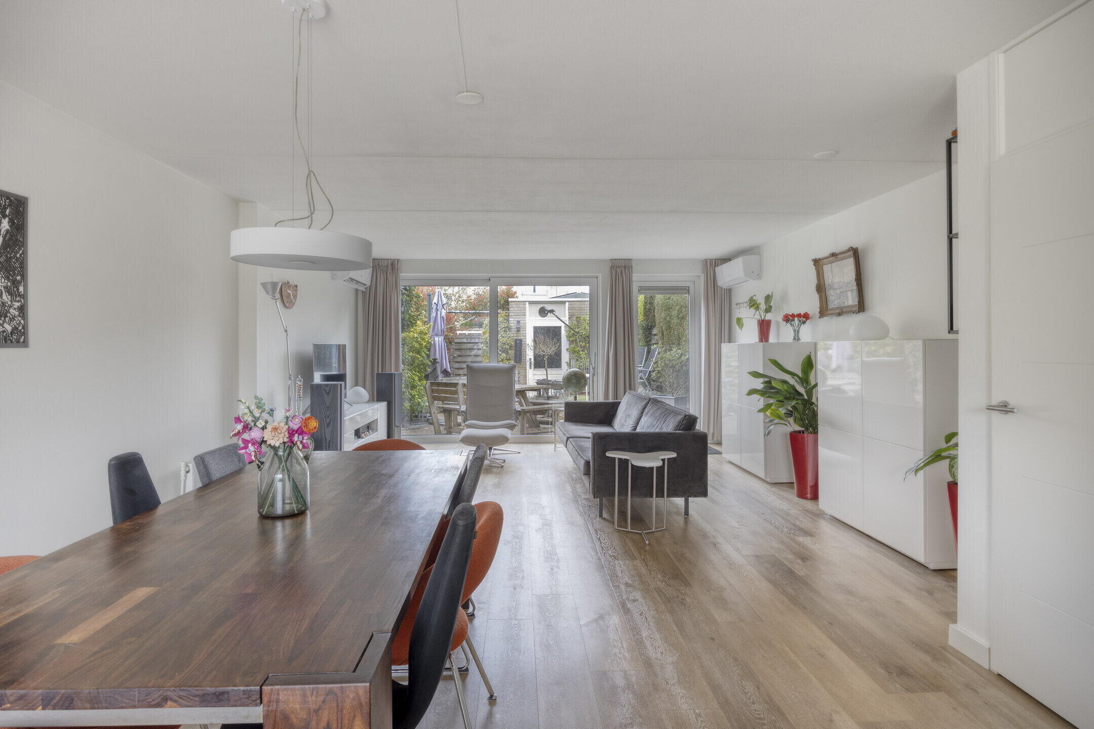 - Over volle breedte uitgebouwde heldere en sfeervolle tuingerichte woonkamer (ca. 40 m²) v.v. twee airco's t.b.v. verwarmen/koelen. Bovenop de uitbouw bevindt zich een sedumdak, dat tevens zorgt voor isolatie;
