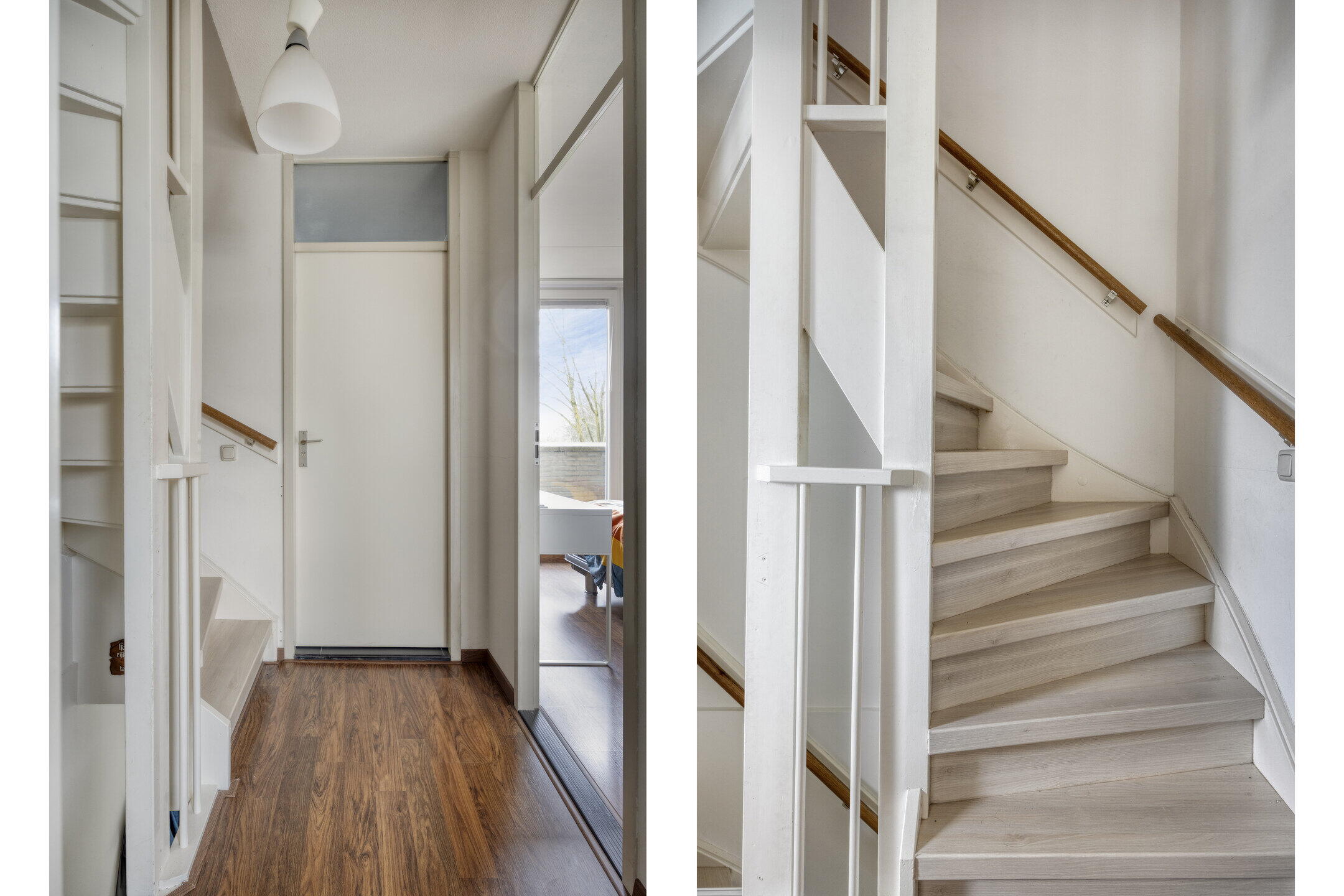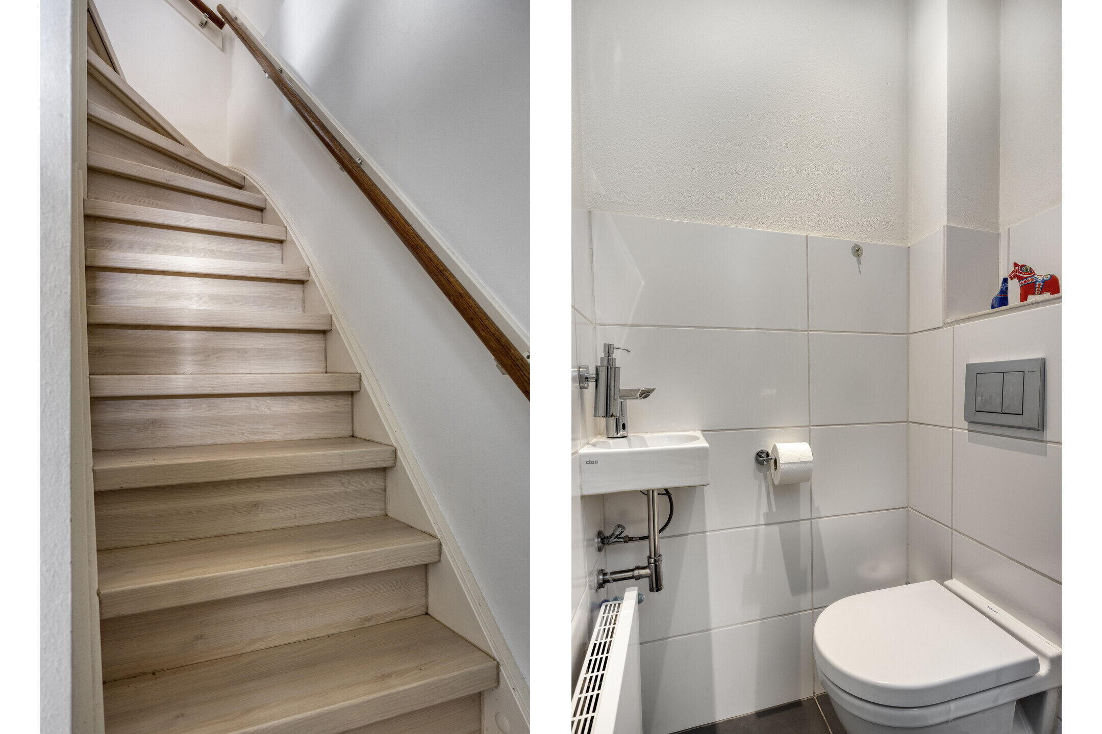 - Entree/hal met garderobe en toiletruimte v.v. zwevend closet en fonteintje, meterkast, trapopgang en toegang tot de woonkamer;