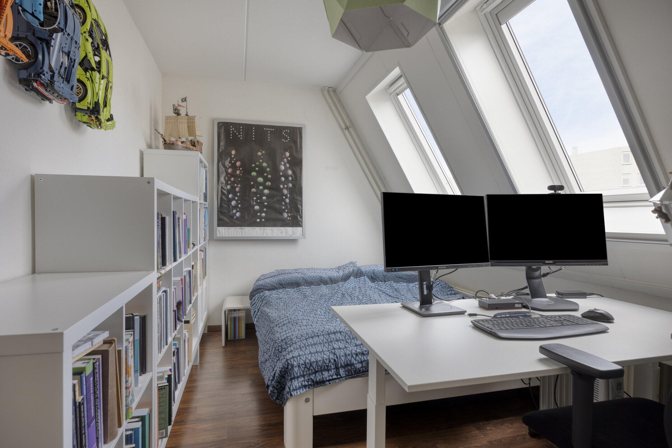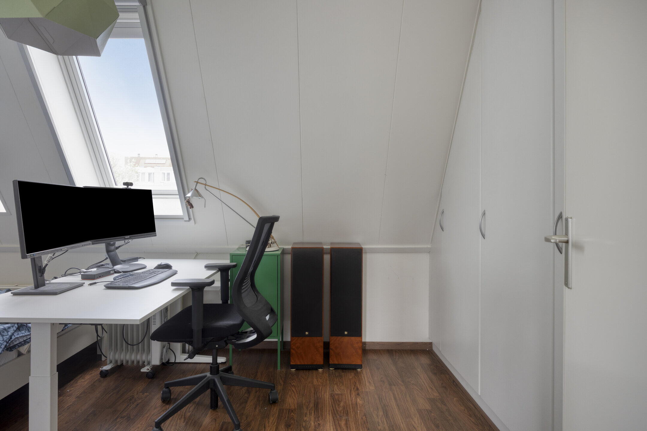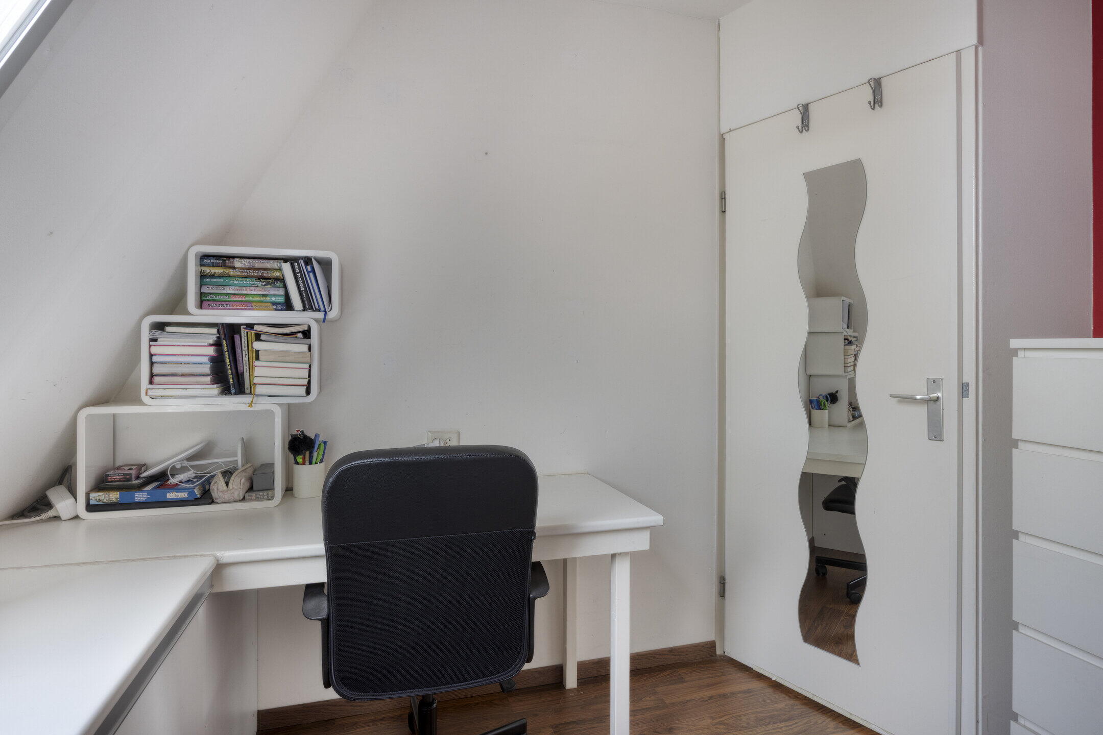 - Slaapkamer 5, linksachter, ca. 10 m², met inbouwkast/bureau (blijft achter);