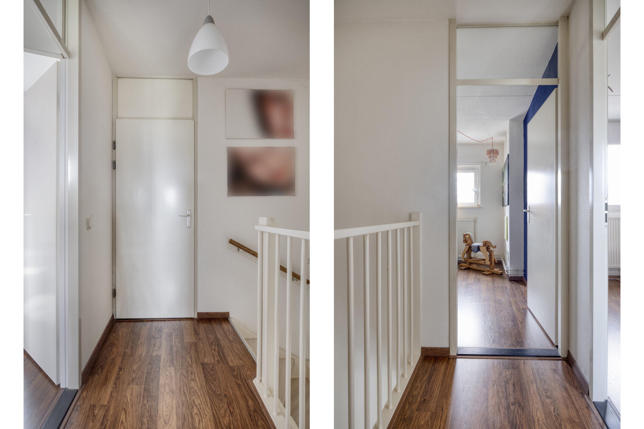 - Middels vaste trap te bereiken overloop, met toegang tot cv-/wasruimte en de drie slaapkamers;