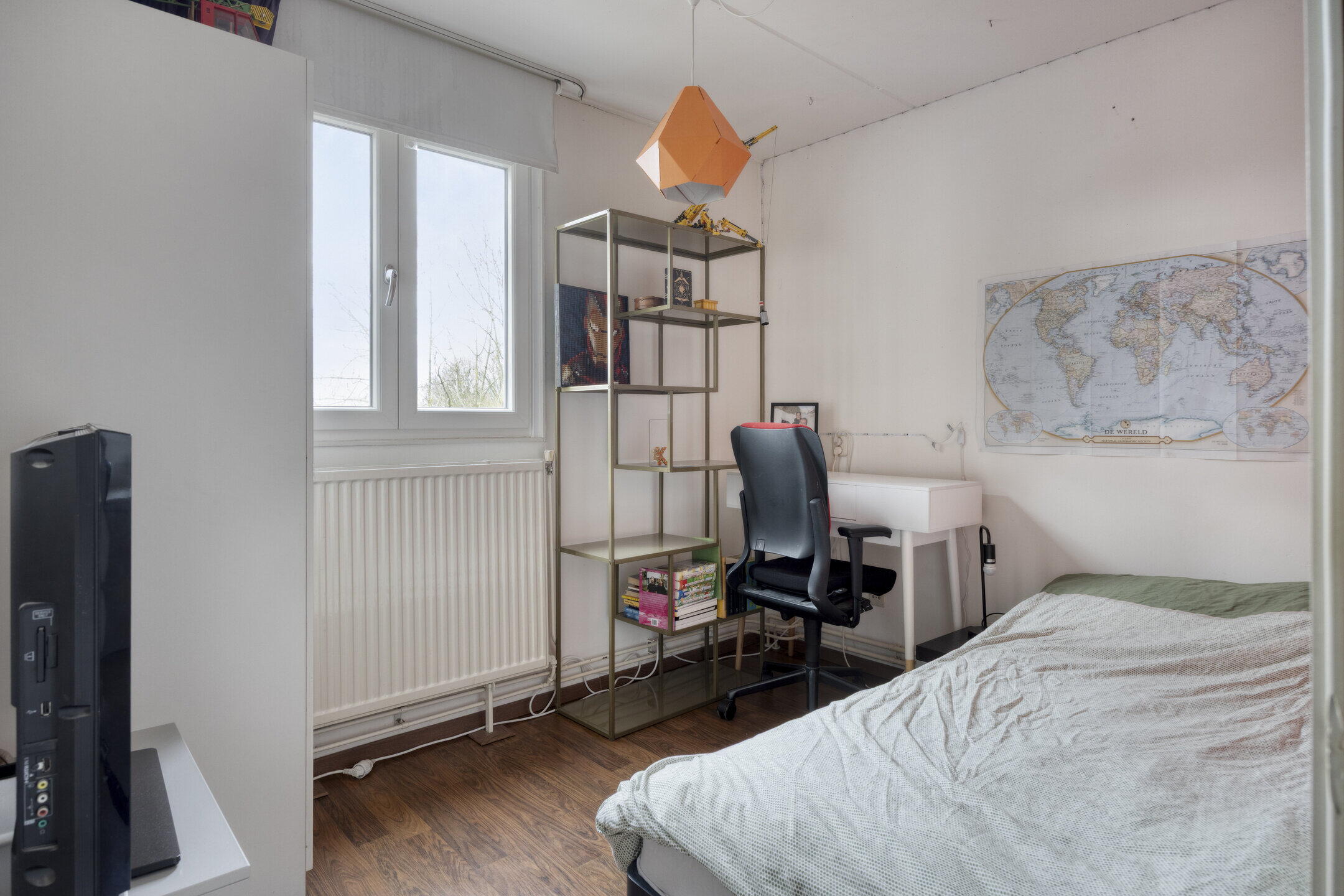 - Slaapkamer 2, ca. 13 m², gelegen aan de voorzijde met ruime kledingkast (blijft achter), met openslaande ramen/deuren naar het balkon (ca. 4 m²) op het zuiden;
