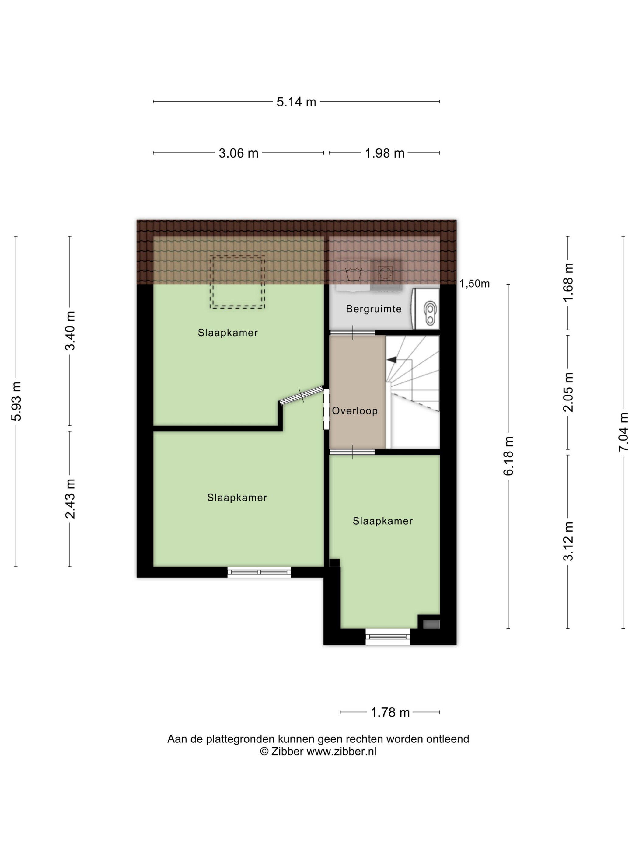 - Slaapkamer 3, rechtsvoor, ca. 6 m²;